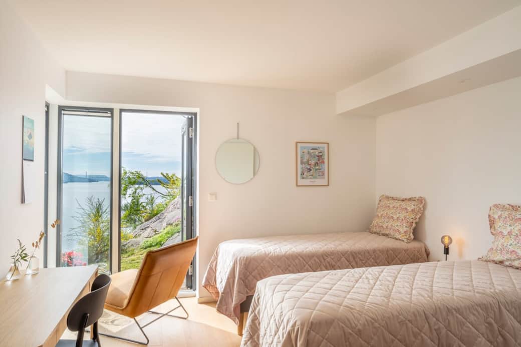 Beautiful views of the city fjord from the bedroom. A dedicated workspace with a desk. The bedroom f